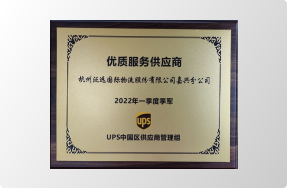 获得UPS中国区供应商管理组颁发的2022年度最佳业务增长供应商荣誉